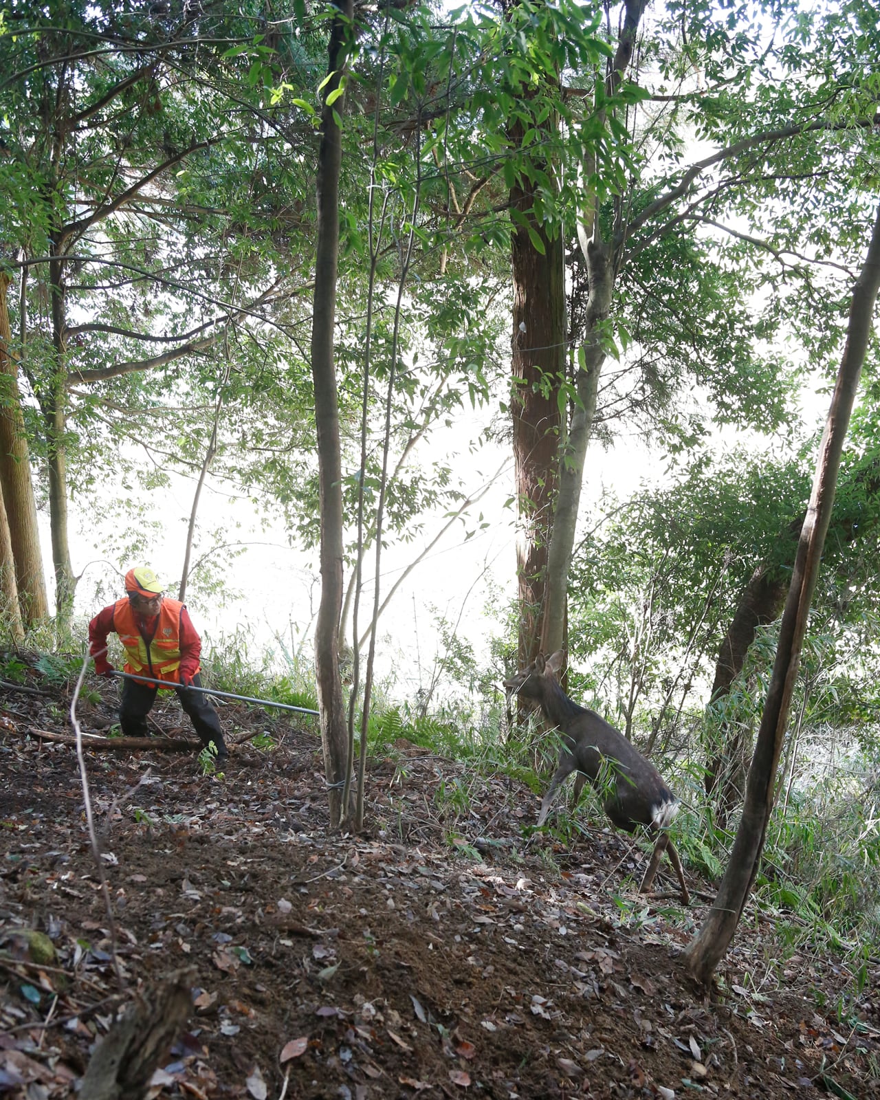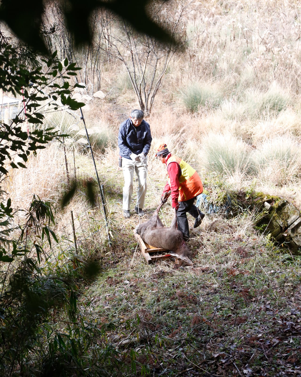 ※実際に罠に鹿がかかっている場合は実践を、かかっていない場合は罠を仕掛ける場所や配置などをご説明いたします。