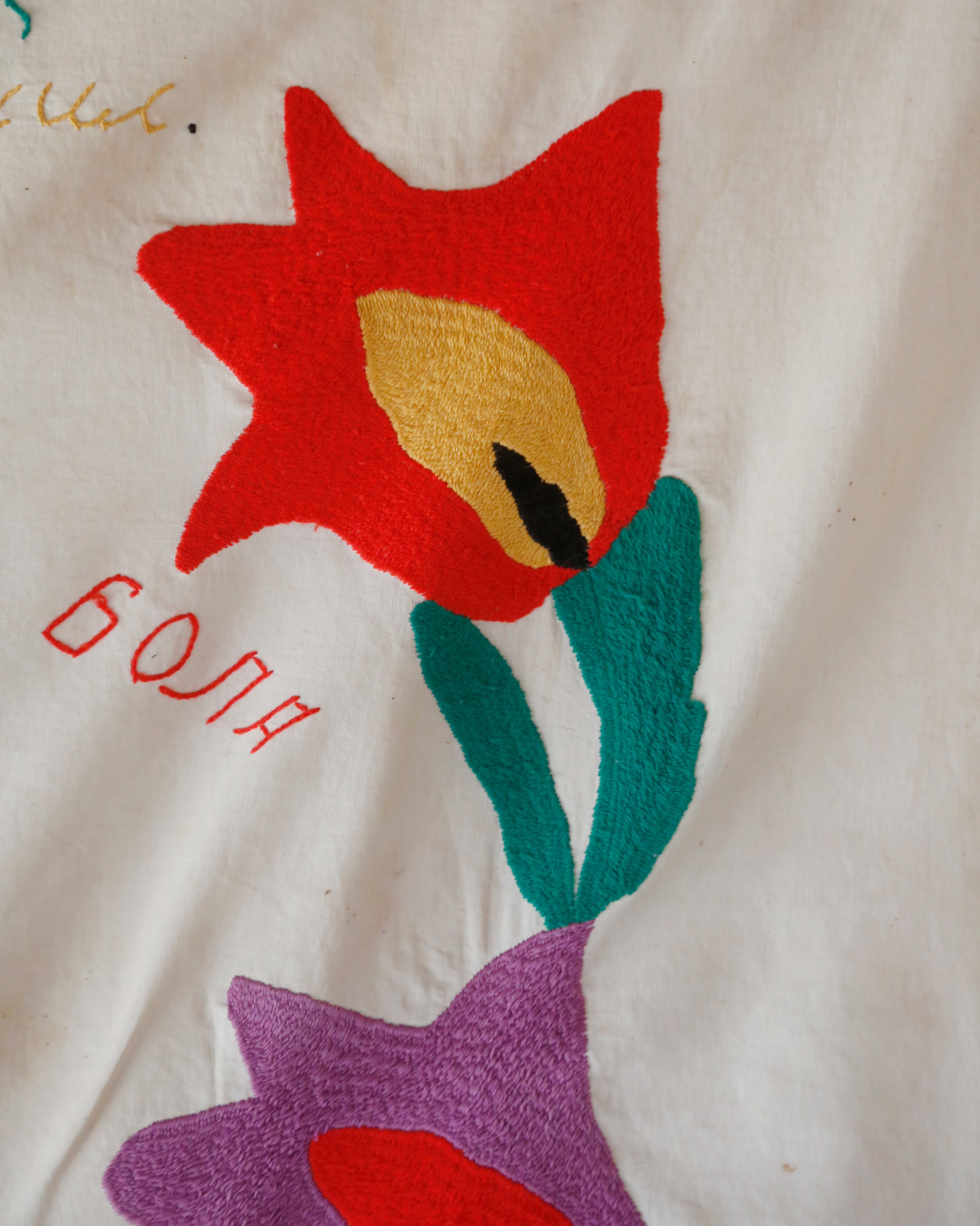 手刺繍 / キリル文字・母子像 / 中央アジア(1981年)