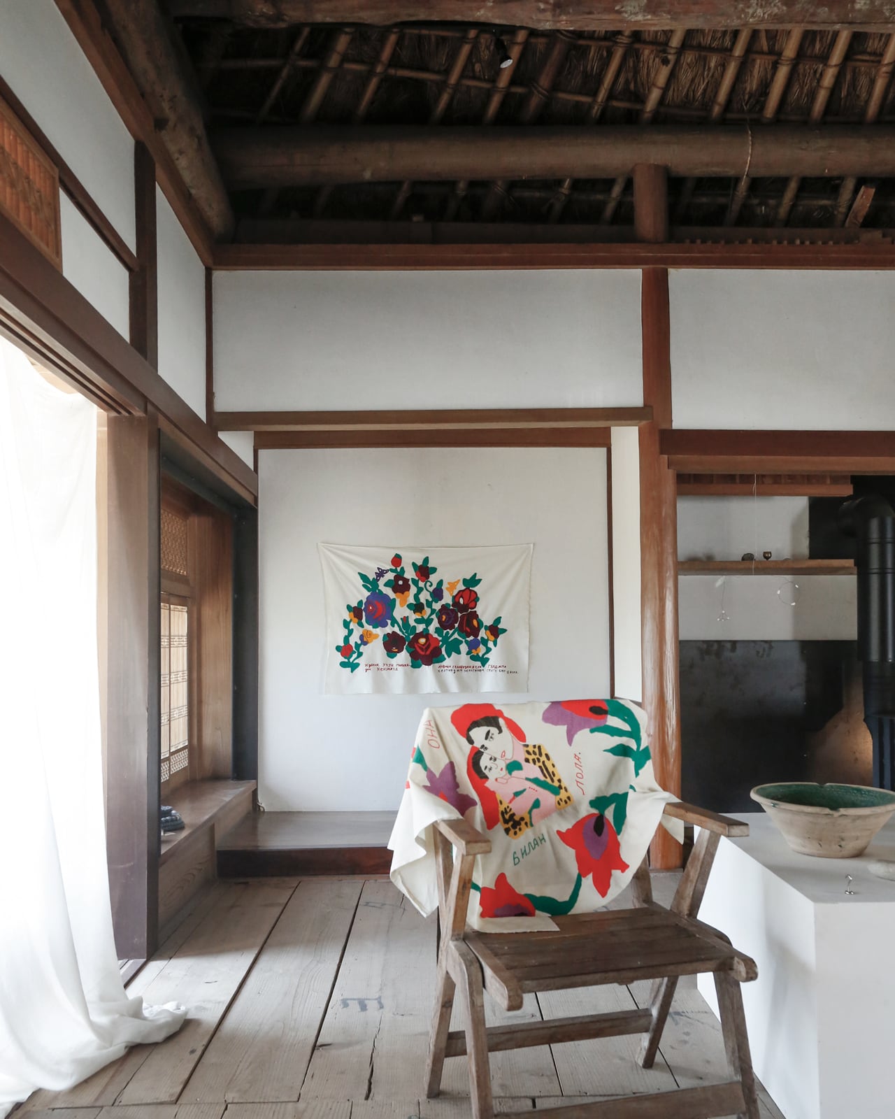 タペストリーとしてシンプルな白い壁に飾るだけで絵になります。